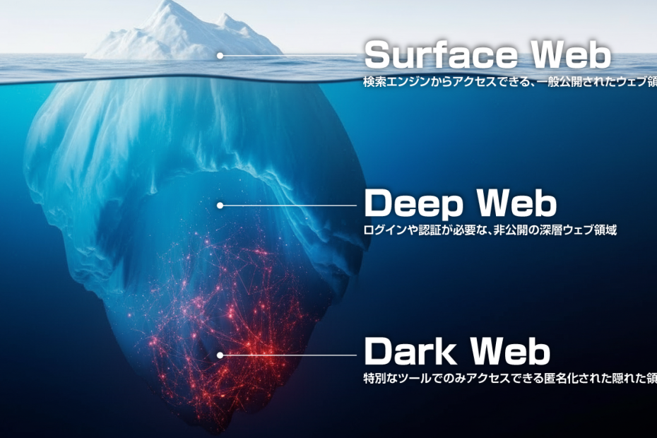 検索エンジンで閲覧できる「サーフェスウェブ」、銀行サイトやメールなどのログイン領域を含む「ディープウェブ」。そのさらに下層に存在するのがダークウェブです。