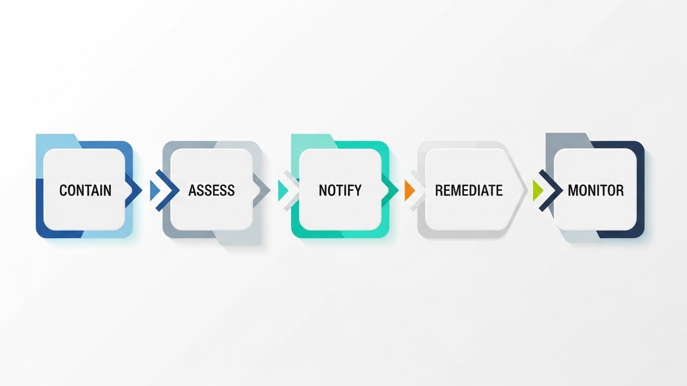 - Contain(封じ込め): 漏えいしたパスワードを直ちにリセットし、多要素認証(MFA)を必須化する。