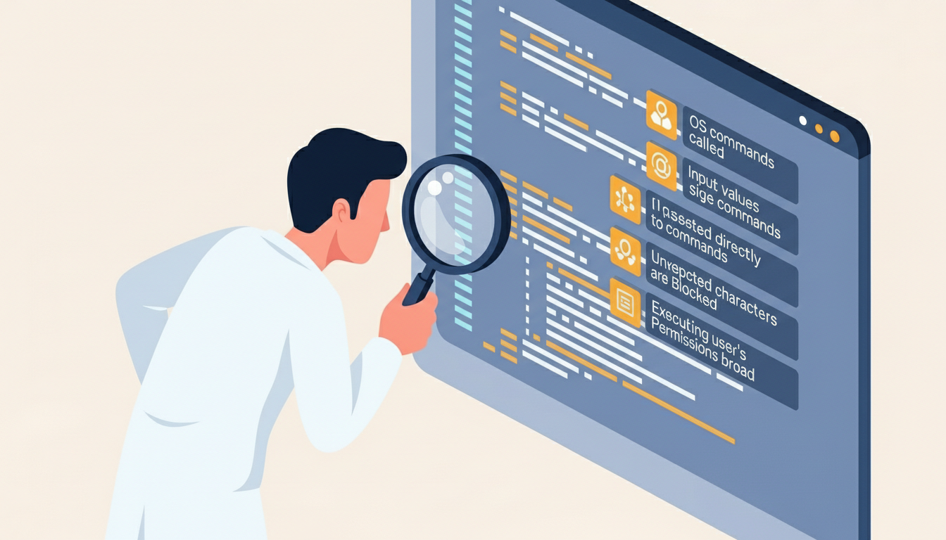 ここで重要なのは、「入力を検証しているか」だけでは足りない点です。型変換の前後、文字列連結のタイミング、実行APIの選択(シェルを介するかどうか)などで、抜け道が残ることがあります。