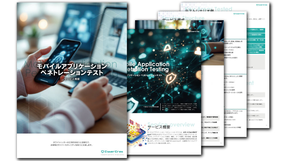 モバイルアプリケーションペネトレーションテストに関する技術仕様から金額・プランまでをご案内した資料になります。