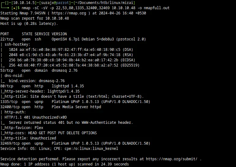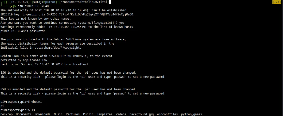 今回取り上げるのは、Hack The Box に公開されている「Mirai」というマシンです。