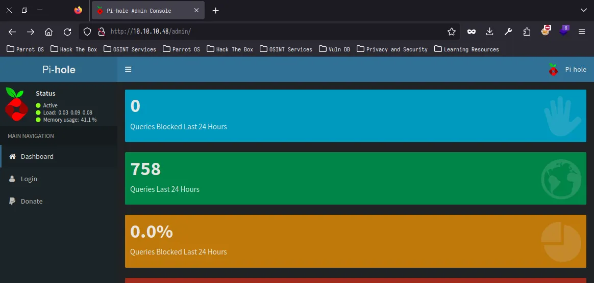 実際にアクセスしてみると、表示されたのは Pi-hole の管理画面です。