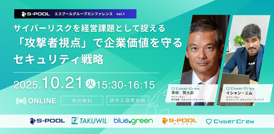 株式会社CyberCrewは、2025年10月21日(火)開催の「エスプールグループカンファレンス」にて、攻撃者視点に基づく実践的なセキュリティ戦略を経営層・マネジメント層の皆さまへお届けします。