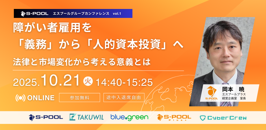 | 登壇企業 | 株式会社エスプールプラス、株式会社エスプールブルードットグリーン、 株式会社エスプールヒューマンキャピタル事業部、株式会社CyberCrew |