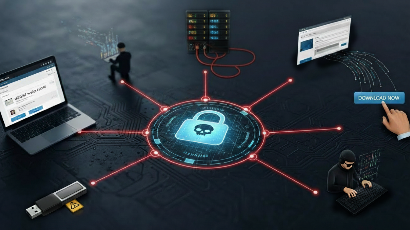 取引先や宅配業者、請求書を装ったフィッシングが代表的で、添付ファイル(Office文書、PDFに見せた実行形式など)や、本文中リンクのクリックで侵入を許します。
