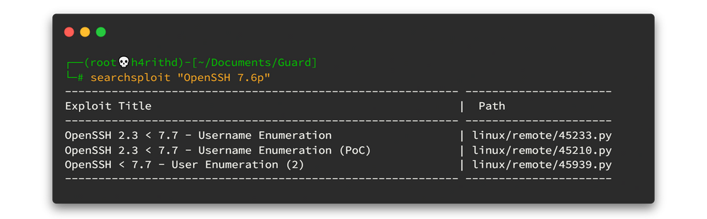 OpenSSH < 7.7 - User Enumeration のような PoC は存在しますが、依存関係エラーが多く、実用的ではありません。