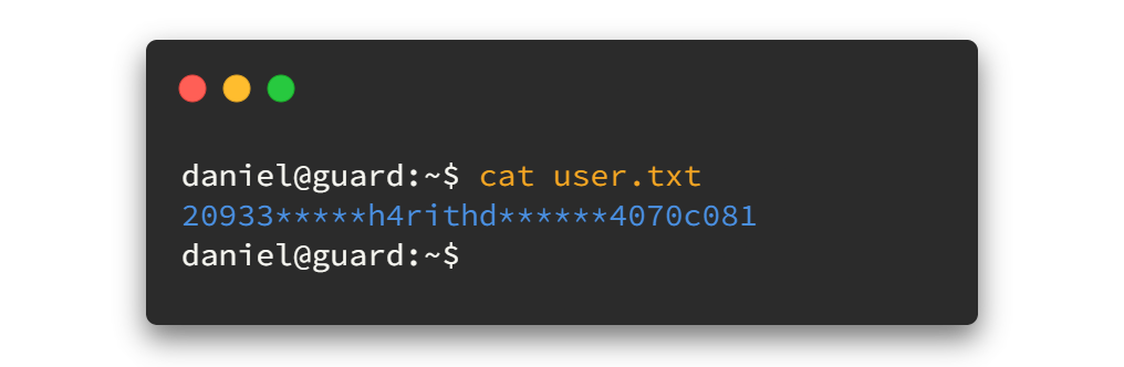 その後、cat user.txt を実行するとフラグを表示できるようになります。