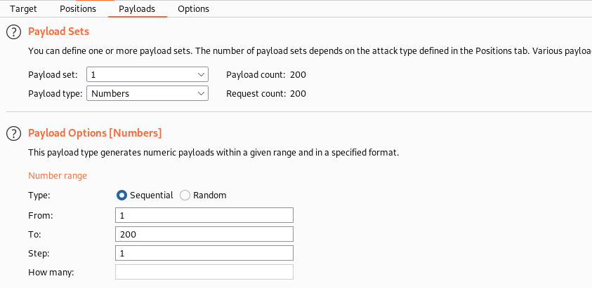 Burp Intruder にリクエストを送り、パラメータを変更して総当たりを実施します。