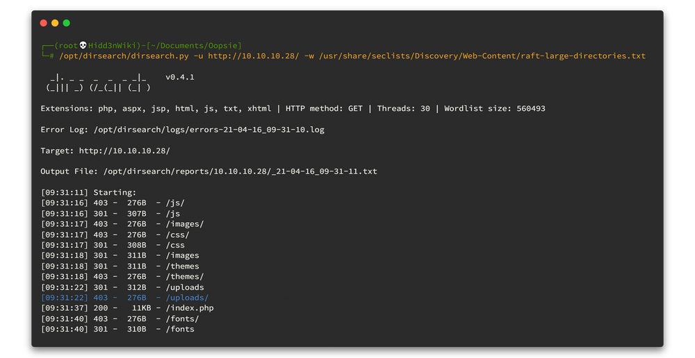 dirsearch.py -u http://10.10.10.28/ -w /usr/share/seclists/Discovery/Web-Content/raft-large-directories.txt