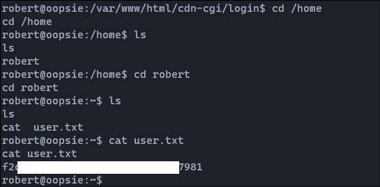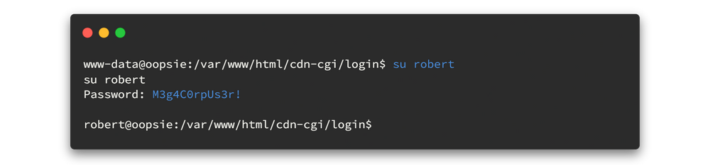 この認証情報を用いて su robert を実行し、robert ユーザーに切り替えます。
