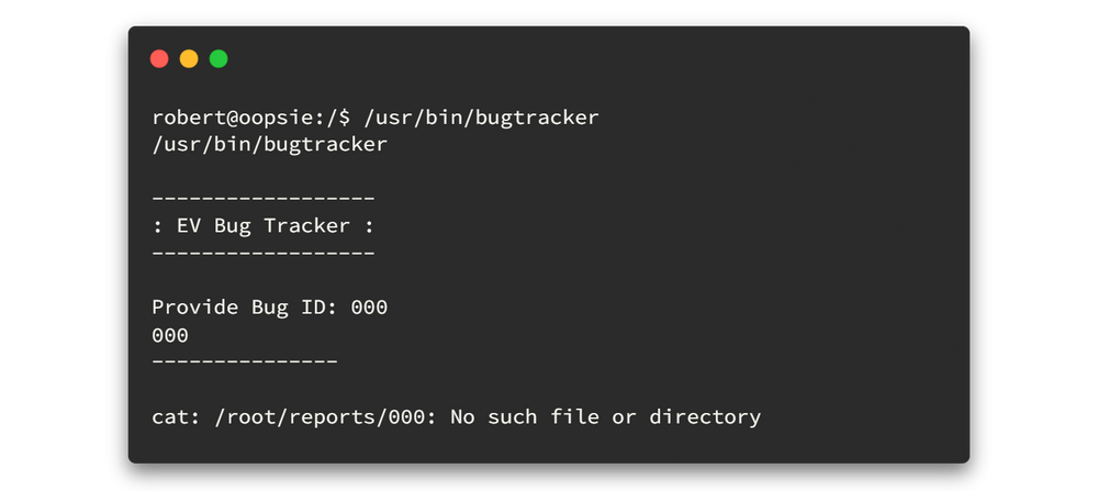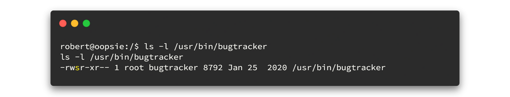 /usr/bin/bugtracker という SUID ビット付きバイナリを発見しました。