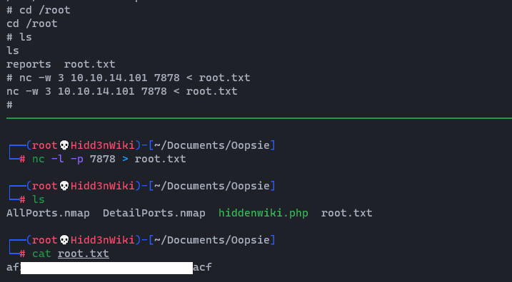 もし cat コマンドで閲覧できない場合は、netcat を使用してファイルを転送します。