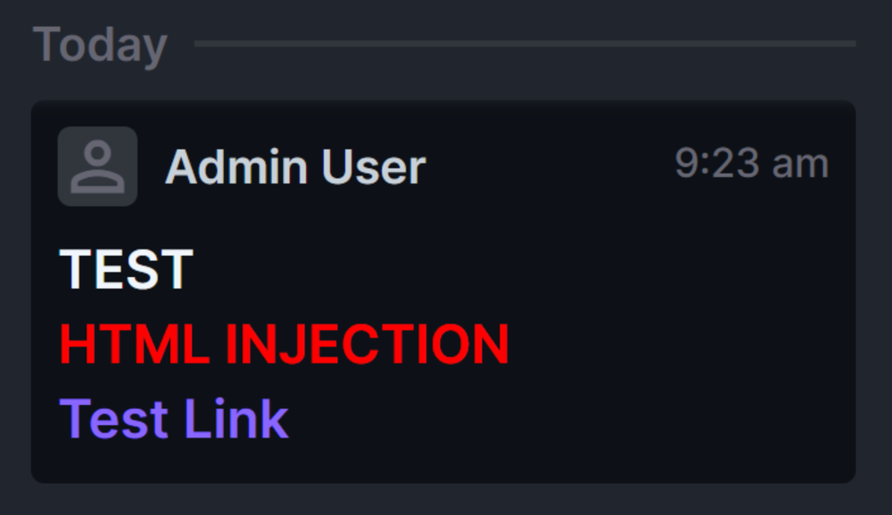 "comment": "<h1>TEST <p style=\"color:red\">HTML INJECTION</p> <a href=\"//evil.com\">Test Link</a></h1>"